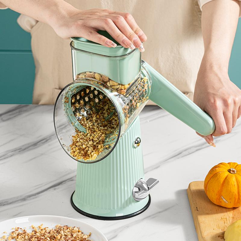 This Rotary Cheese Grater with Handle is a versatile kitchen tool that makes shredding and grating food effortless.