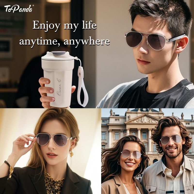 ToPanda : A creative brand in Hong Kong for over 10 years. Developed a wide range of innovative products. Sound and Vision is one of the major catalogue. Supplied OEM/ODM products to a number of international brands. ToPanda, make your VISION more fashionable. Smart Audio Glasses : A new lifestyle of SOUND & VISION. Open ear speakers, it allows you to stay aware of your surroundings, while enjoying your music. Great for use while meeting, driving, gaming and traveling. Calls, music, navigation : Integrated AI voice control gives you access to your navigation, phone calls, music, etc. without having to pull out your phone. Always be listening to your favorite music playback. Invisible Slide Touch: The hidden touch sensor in the temples allow you to operate the unit comfortably. General interactive controls like adjusting volume, soundtracks play/pause/switch, answering, or turning down calls are all at your fingertips. Optional lenses : ToPanda Glasses are lightweight and comfortable, all-day-wear. There are models with Anti-Blue Light Clear Lenses, Photochromic lenses , UV400 Grey Lenses and Normal Clear lenses respectively. Please select the correct one at your interest. HI-FI Stereo Sound : TWS, Build a Bluetooth audio eyeglasses, upgrading from front-line chips, headsets to loudspeakers to ensure the reduction of noise on the phone and restore the fidelity effectively. Bluetooth Headphone : Upgraded Bluetooth 5.1 Chips, Faster and steadier. Excellent sound quality, steady compatibility and connection.