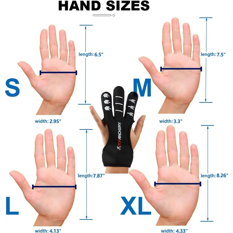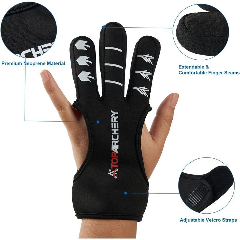 - Material: Crafted with high-quality leather, the Archery Arm Guard offers durability and reliability. Its sturdy construction makes it resistant to wear and tear, ensuring long-lasting use. The soft inner lining provides a comfortable fit, allowing you to focus on your aim without any distractions. The 3-finger glove is made of elastic polyester material, more soft and suitable. Non-skid fingertip pad design helps added cushioning, reduce discomfort from the string.