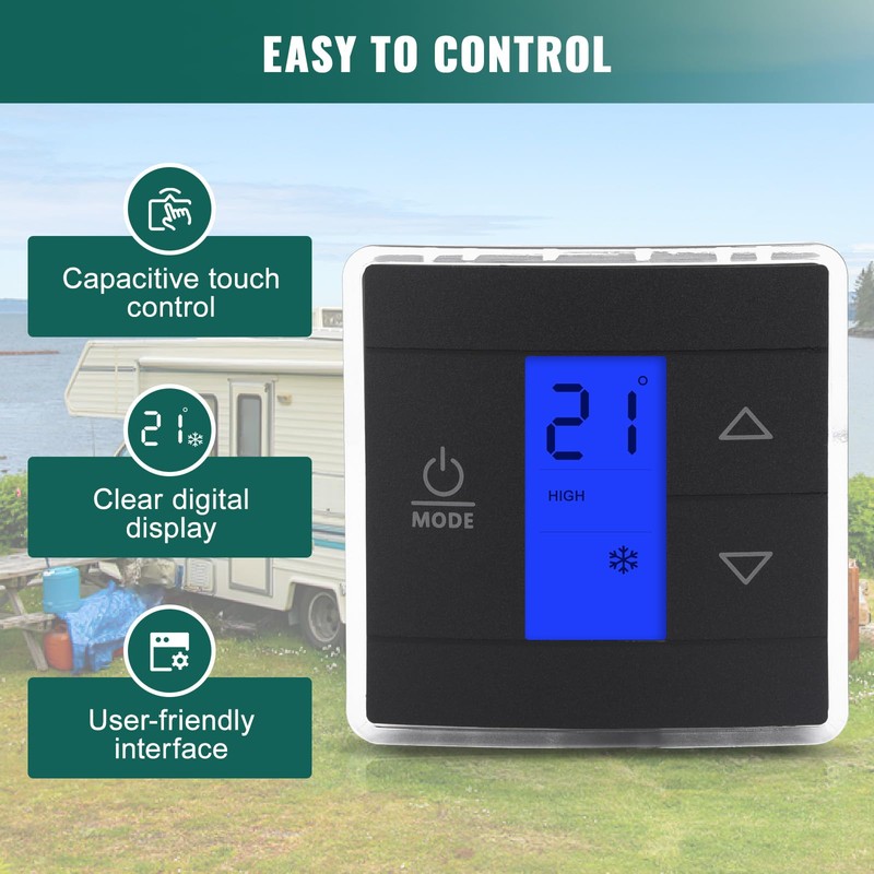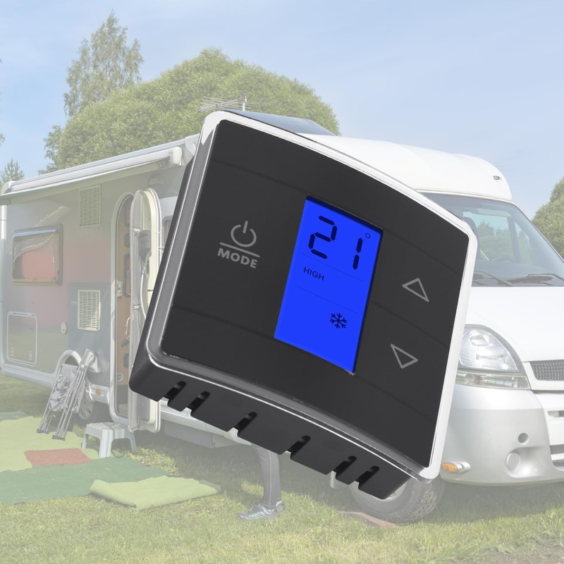 - RV Air Conditioner Thermostat is the perfect addition to your RV, trailer or camper. Using advanced technology of capacitive sensors, it ensures that the temperature in your unit is always comfortable and controlled