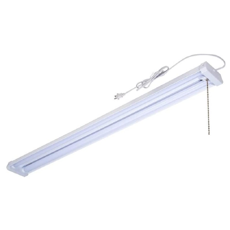 - To make installation quick and easy, this fixture features integrated tubes, built-in on/off pull chain, is linkable and come with a five-foot power cord, hanging chains and V-hooks for suspension mounting.