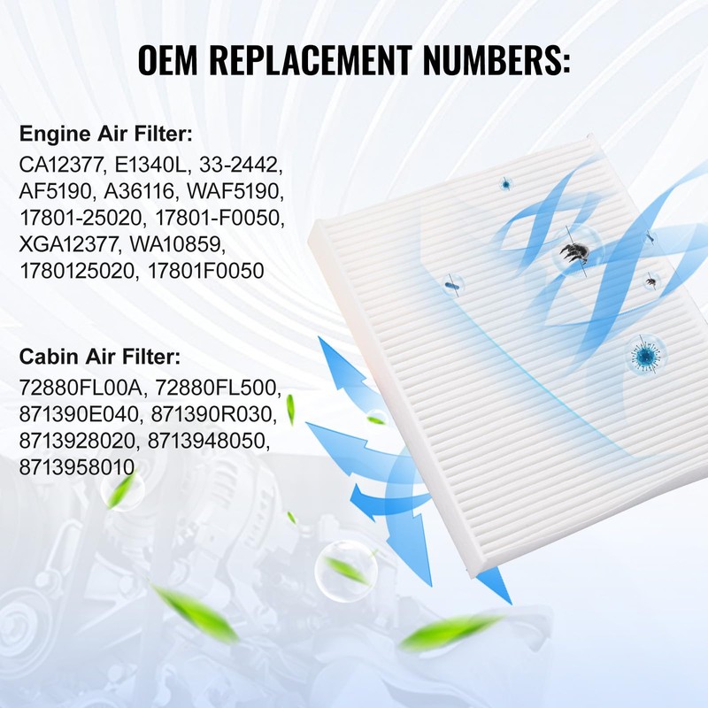 - [OEM Part Number]: Engine Air Filter: CA12377, E1340L, 33-2442, AF5190, A36116, WAF5190, 17801-25020, 17801-F0050, XGA12377, WA10859, 1780125020, 17801F0050