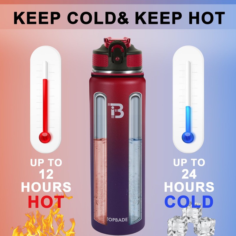- DOUBLE WALL INSULATION: Our water bottle is made from high-quality 18/8 food-grade stainless steel, rust-proof, BPA-free, lead-free, and easy to wash. This wide mouth water bottle features double-walled vacuum insulation, which can keep your beverages cold for 24 hours and hot for 12 hours with a fresh taste. The wide mouth design is perfect for ice cubes and easy to clean.