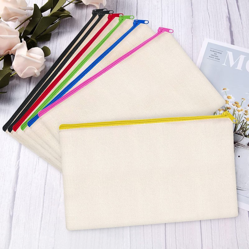 TOPBELIEF 8 Pcs Canvas Zipper Pouch Bags, DIY Blank Fabric Pencil Cases, Blank Canvas Bags with Zipper, Multipurpose Canvas Pouch, Canvas Makeup Bag, Canvas Pencil Case for Painting, Craft, Organizer