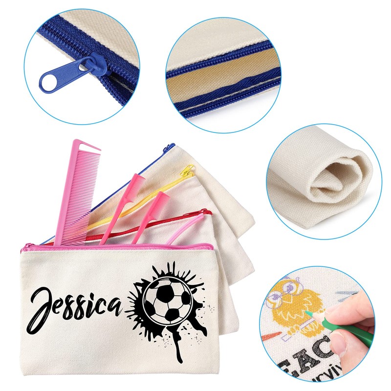 2. These Canvas Zipper Pouch Bags for kids are made of plain cotton fabric, the cotton bags can be washed several times and used repeatedly, the soft and durable fabric is one of their features.