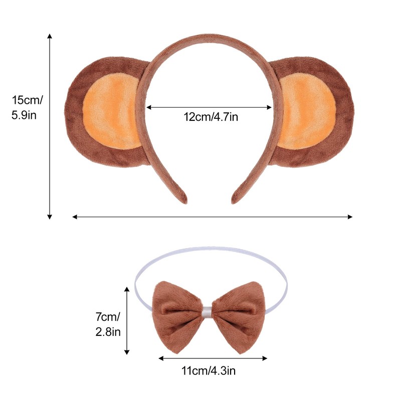 - Brown Monkey Fancy Costume Set: Monkey ears and tail costume accessories headband set include 1 piece monkey ears headband, 1 piece monkey tail and 1 piece brown bow tie. complete monkey costume headband accessory for women men Halloween cosplay themed parties. one size fit for most.