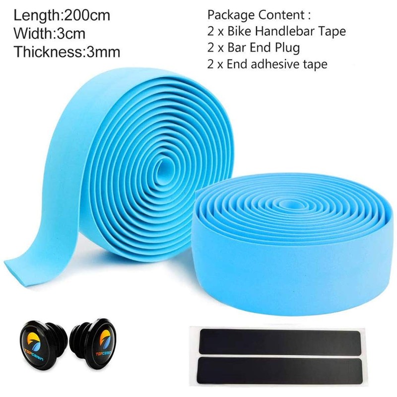 TOPCABIN Bicycle Handlebar Tapes, 2 Rolls Comfort Handlebar Tape for City Bike, Road Bike, Handlebar Tape with Bar Plugs (Light Blue)