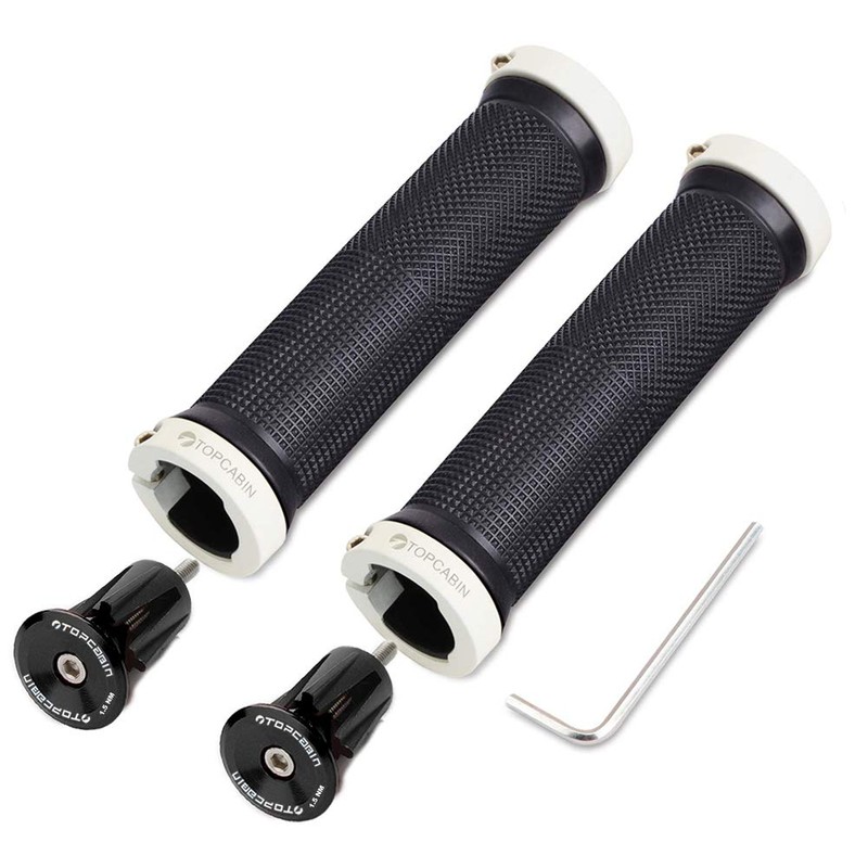 TOPCABIN Bike Grips Double Lock on Locking Bicycle Handlebar Grips Cycle Bicycle Mountain Bike BMX Floding ((Aluminum lock plug+Grips) White 1 Pair)