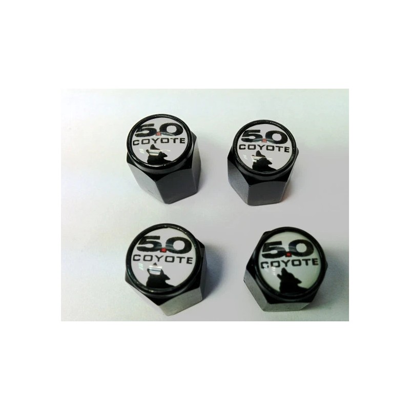 TopCaps Billet Fits Ford 5.0 Black With Coyote Mustang SVT Cobra Shelby GT Stem Caps