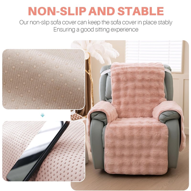 - 【Ultra-Soft Faux Rabbit Fur】Say goodbye to slippery recliners and hello to ultimate comfort with the Faux Rabbit Fur Slipcover.The unique closure types and seersucker fabric ensure a secure fit, while the thick faux fur material adds a plush touch to your furniture. Its dense, fluffy texture provides exceptional insulation, keeping you warm and comfortable during chilly evenings or movie marathons.