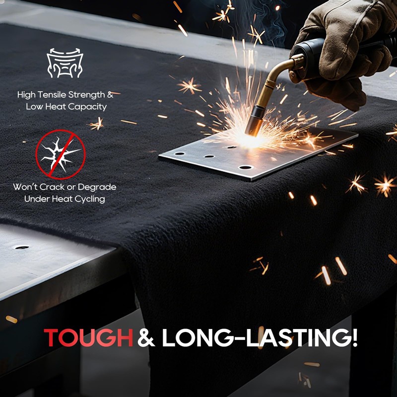 - Exceptional High Temp Resistance – Up to 2200℉: Made from 100% pre-oxidized carbon felt, this welding blanket withstands extreme temperatures up to 2200℉ (1200℃). UL94 fire-retardant certified and MSDS tested, it delivers dependable heat shielding during welding, soldering, brazing, and other high-heat tasks
