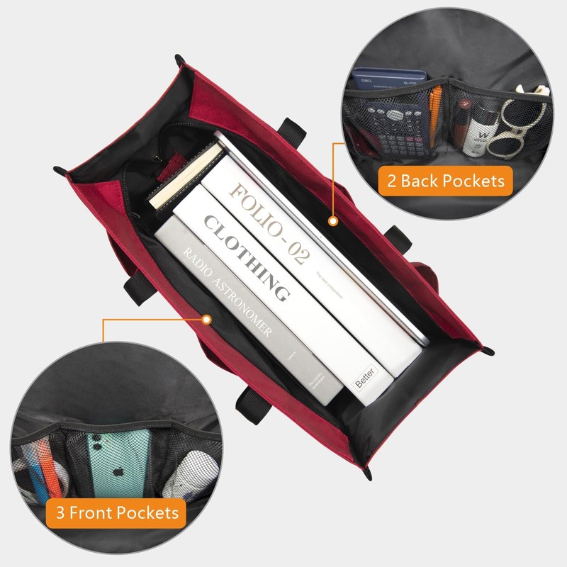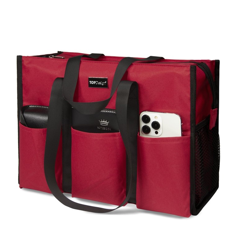 TOPDesign Utility Water Resistant Tote Bag with 13 Exterior & Interior Pockets, Top Zipper Closure & Thick Bottom Support, for Working Women, Teachers, Nurses, Accountants (M Red)