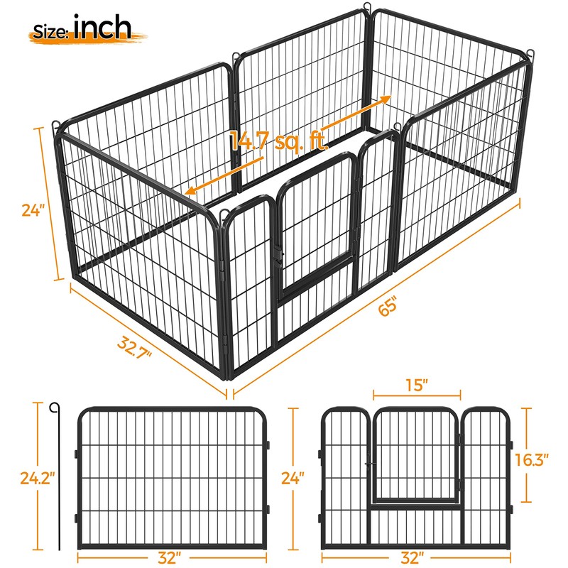 Topeakmart 24-Inch 6 Panel Heavy Duty Portable Pet Playpen Dog Exercise Pen Cat Fence Crate Cage Kennelwith Door Puppy Rabbits Play Pen,Outdoor/Indoor,Black
