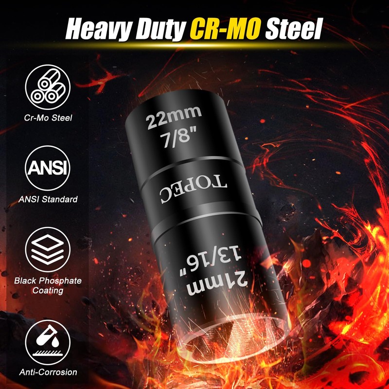 Topec 2-IN-1 Lug Nut Extractor, 1/2 Drive Lug Nut Removal Tool, Flip Wheel Lock Remover Socket Kit for Damaged, Stripped and Rounded Bolts, Nuts (21mm x 22mm)