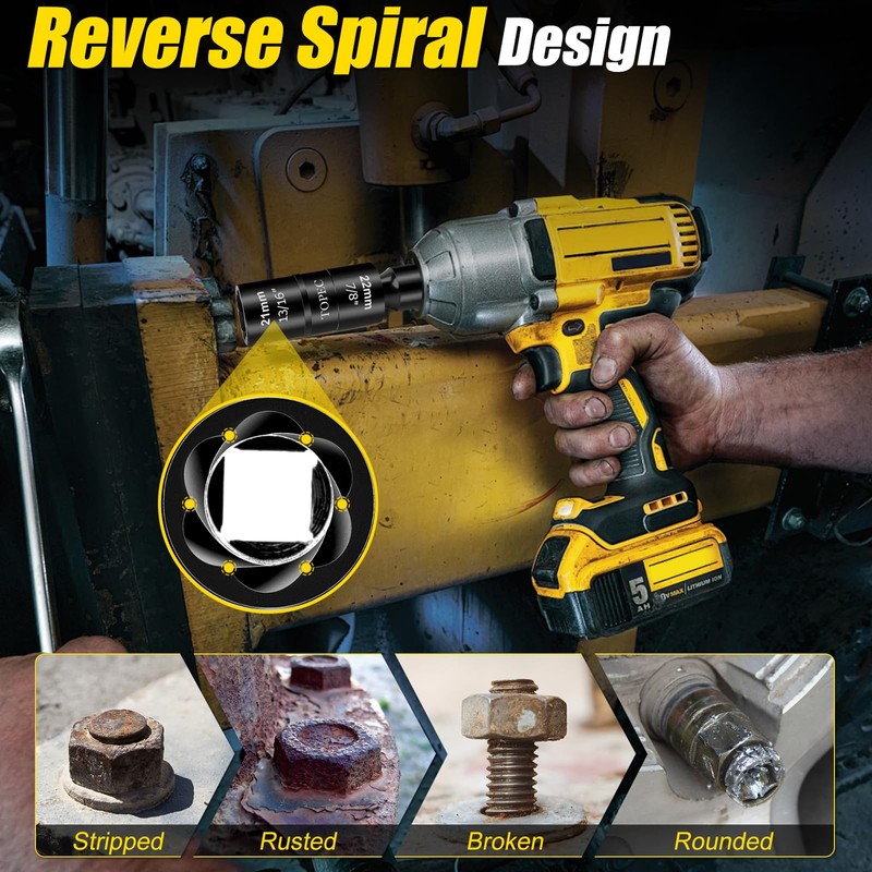 - The internal thread with reverse spiral flutes design tightly grips stripped, rusted, rounded and damaged bolt, lug nuts without slippin