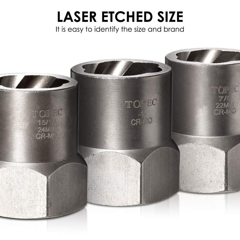 - SUPERIOR GRIPPING POWER - Made of impact-resistant 42CRMO steel material (chromium-molybdenum steel), providing excellent durability and corrosion resistance. The thicker wall provides the strength required by the sleeve, The reverse spiral groove of the socket(the right-handed design of the internal torx thread) is designed to bite and provide maximum grip. provides a large bite to remove larger sized nuts or bolts.