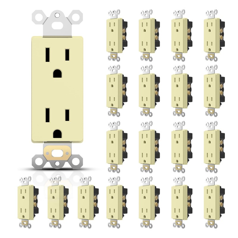 TOPELER Decorator Wall Receptacles, 15A 125V Standard Electrical Power Socket for Commercial and Residential, Non-Tamper Resistant, NEMA 5-15R, Self-Grounding, UL, Ivory, 20 Pack