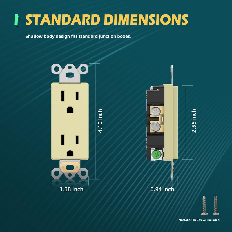 • Self-Grounding - Electric decora outlet with green grounding screw and self-grounding clip ensure automatic grounding within the junction box, effectively shielding you from potential electrical hazards