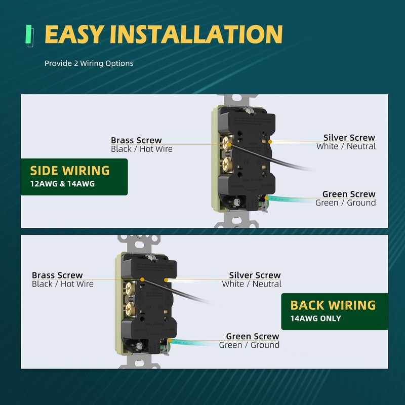 • Easy Installation - Shallow body design allows for compact wiring. Decora wall outlet compatible with both side wiring (12-14 AWG) and back wiring (14 AWG) for flexible setup