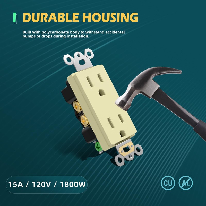Whether you're a professional electrician or a DIY enthusiast, these wall outlets are designed for hassle-free installation. Featuring self-grounding capability, they provide added safety without requiring an external grounding wire—ideal for saving time during installs in grounded metal boxes.
