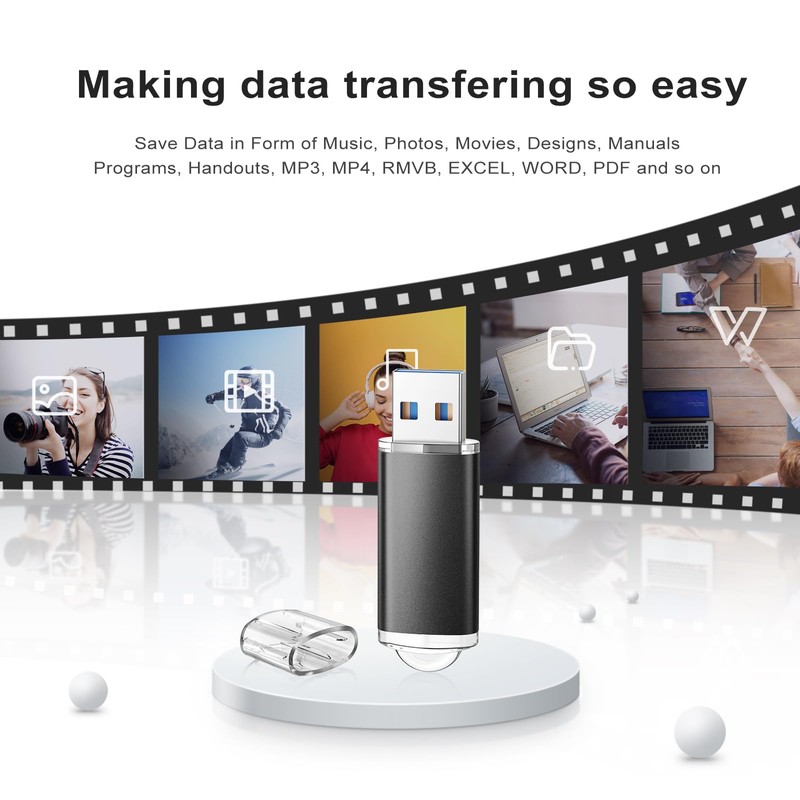 • 【Large Storage Capacity】5 Pack 32GB USB Flash Drives available in 5 mixed colors - black, silver, red, blue, green. It is perfect for classifying and storing various files.