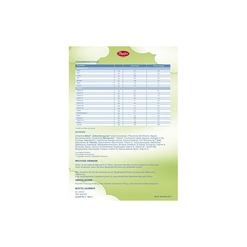 - Bio-Folgemilch mit Bio-Früchten, ab dem 10. Monat. Für den im Wachstum steigenden Bedarf an Energie und Aufbaustoffen. Ab dem 10. Monat und für Kleinkinder im Rahmen einer Mischkost. Mit neuer einzigartiger 3er-Kombination aus LC-PUFA, PROBIOTIK und BIO. Mit beliebten Bio-Früchten, hochwertigem Eiweiß, leicht verdaulichen Kohlenhydraten, wertvollen Pflanzenölen sowie wichtigen Vitaminen, Mineralstoffen und Spurenelementen. Glutenfrei, ohne Zusatz von Kristallzucker.
