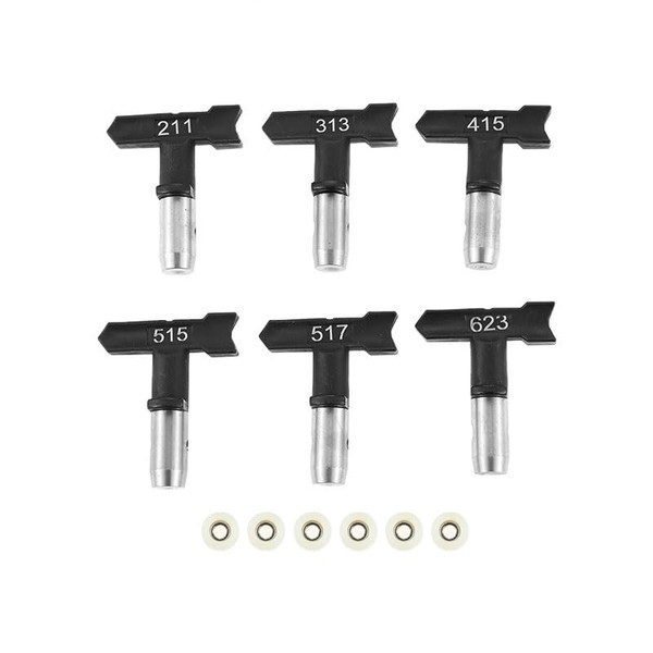 Topgageme Professional Airless Paint Spray Tips Set, T-Shaped, Black and Silver, 6 Sizes 211-623 Spray Paint Nozzles for Airless Paint Sprayers