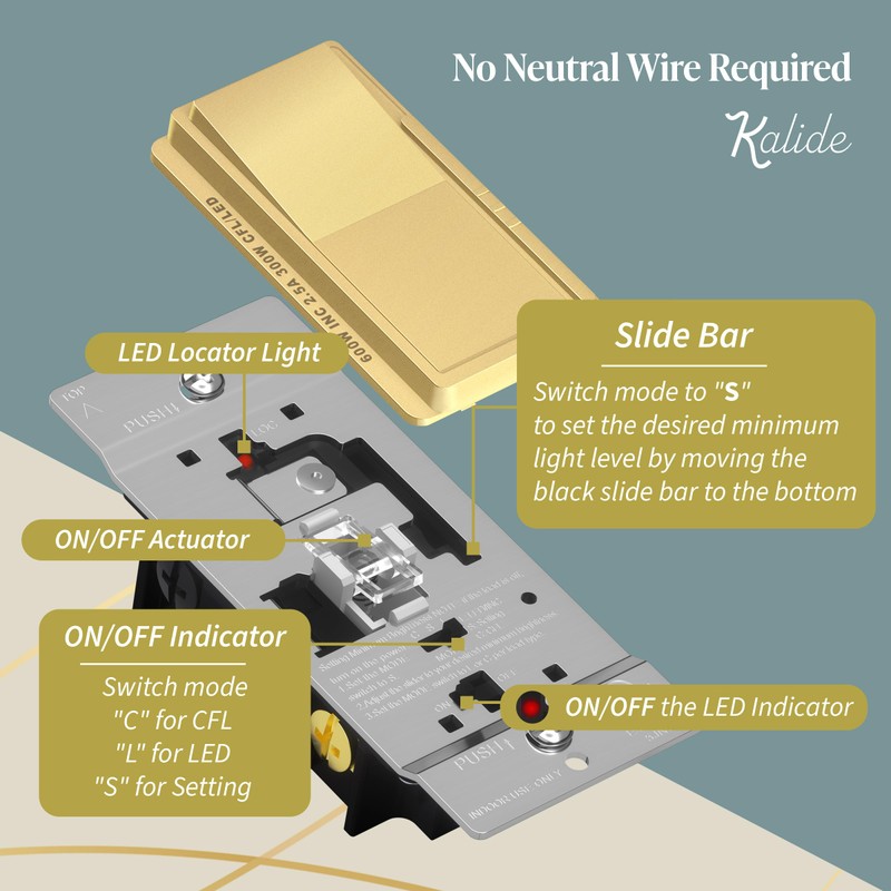 - Dim LED lights to create the perfect ambiance with the Kalide dimmer wall switch; supported by major-brand light bulbs from GE, Cree, Philips, Sylvania, Lithonia, Amazon Basics, EcoSmart, and more; not compatible with smart lighting fixtures