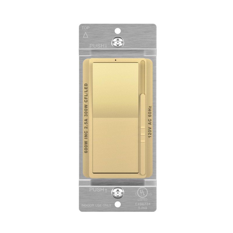 - Gold color; 300W LED/CFL; compatible with dimmable light bulbs only; single pole or three-way application; #14-#12 AWG (copper only); neutral wire not required; 1-year warranty; UL listed