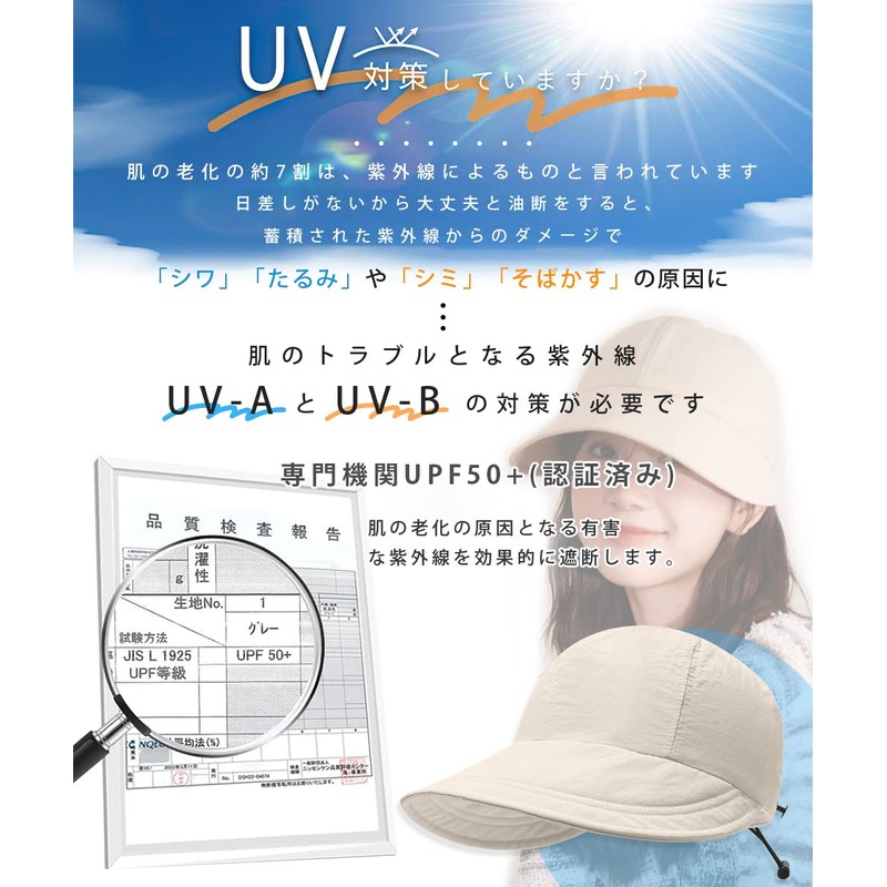 - (UPF 50+ Certified by Japanese Professional Organization) This UV protection hat cuts over 99.9% of UV and near infrared rays. UPF 50+! This hat has excellent sun protection. Perfect for protecting your face and neck from UV rays in strong sunlight. It also has a UPF 50+ protection factor to prevent heatstroke. Safe for commuting to work or school, traveling, and walking on sunny days