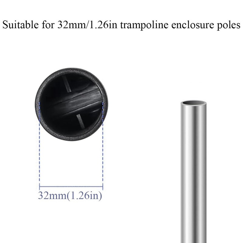 【Precise Fit】This trampoline pole cap has an inner diameter of 32mm/1.26in, suitable for 32mm/1.26in trampoline enclosure poles. Please check the product data carefully before purchasing to make sure the product fits your trampoline enclosure poles and gives you a good using experience