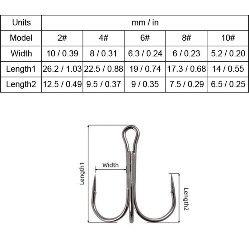 【Durable】Made of high quality carbon steel, treble fishhook is hard, corrosion resistant and has a high tensile strength that allows fishhook to withstand the pulling force of medium and small fish struggling for durability.