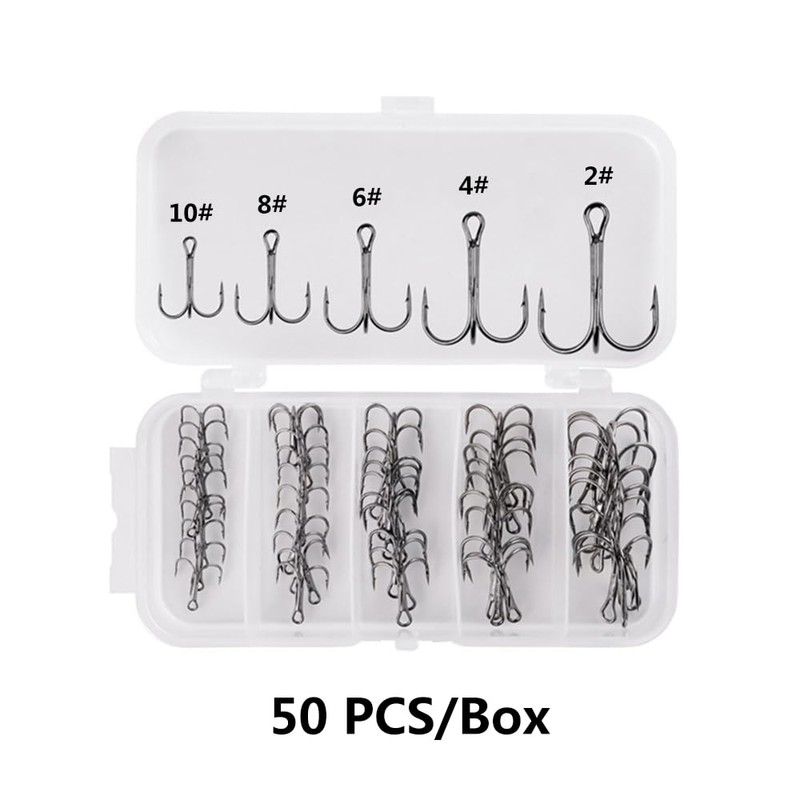 TopHomer 50PCS Treble Fishing Hooks Set, 5 Sizes Carbon Steel Fishing Hooks w...