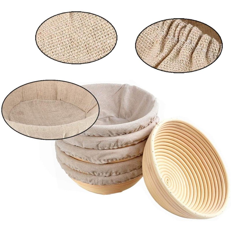 TopHomer 6 Packs Bread Basket Liner Cloth Sourdough Banneton Proofing Cloth Baking Dough Basket Natural Rattan Banneton Proofing Cloth (9 Inch)