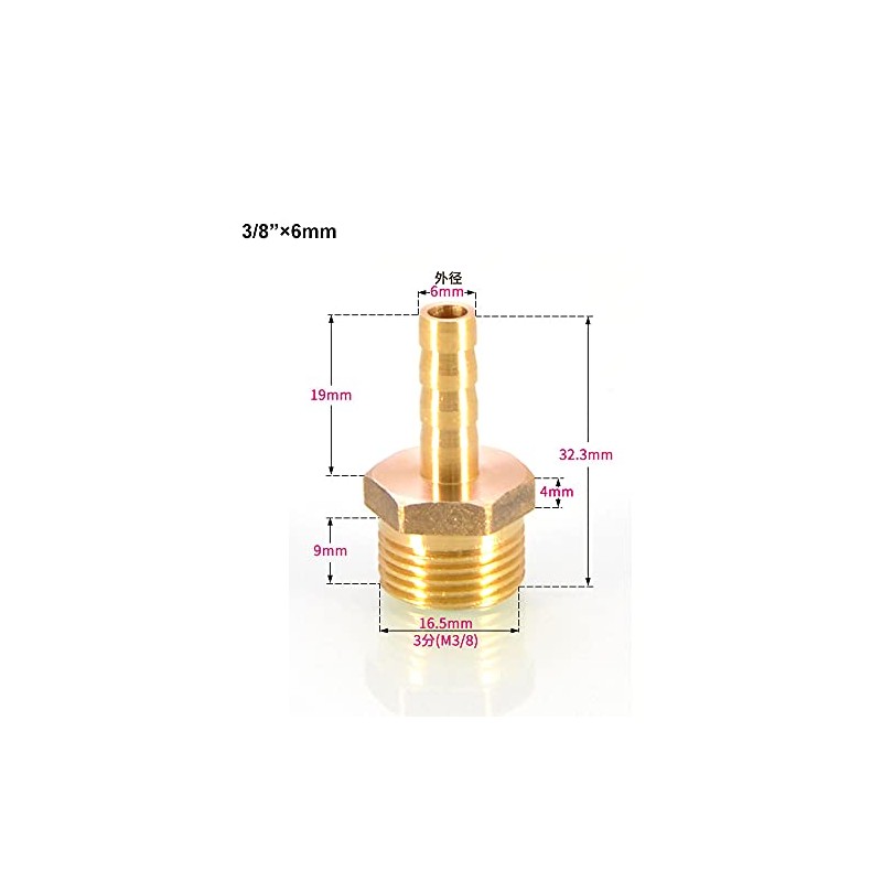 TopHomer Pack of 3 Brass Barbed Hose Fitting Coupling Connector 6 mm to 3/8 Inch Male Thread BSP Thread Pipe Nipple Fitting Pipe Adapter