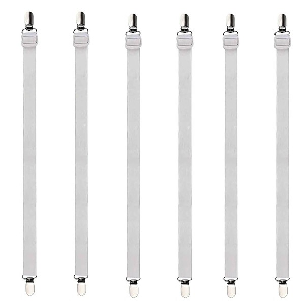 TopHomer Tablecloth Clips Hidden Strap, Adjustable Elasticity Picnic Tablecloth Clamp Camping Accessories for Table Cloth, Bed Sheet, Bench Cover (6, White)