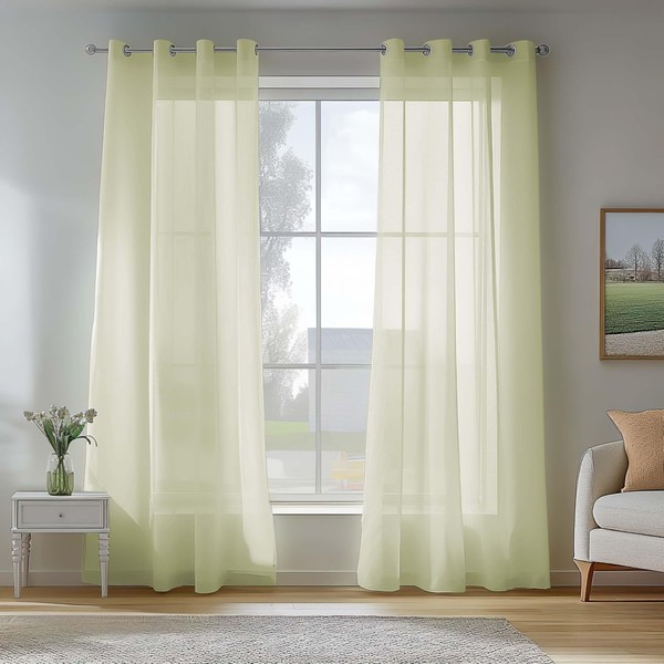TOPICK Curtains with Eyelets, Plain Curtains for Living Room, Children's Room, Boys, Bedroom, Green Transparent Curtains, Country House Style, Modern Window Curtains, Set of 2, 140 W x 210 H (cm)