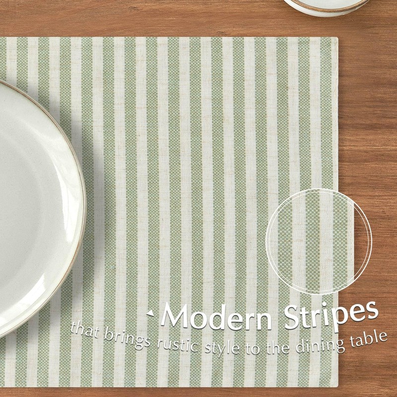 - Vertical Striped Print: Crafted with linen blend fabric, these placemats boast a simple modern aesthetic, ideal for both casual and formal dining settings. Earth tone stripes on the beige sheet infuses your table with a sense of simple.