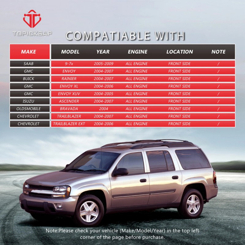 • Interchange Part Number: Left, Right Driver Passenger Side, Chevrolet Trailblazer, GMC Envoy, XL, Oldsmobile Bravada, K620467 K620468 K640294 K640293 K80824 K80825, ES3675 ES3676 K6664, Upper Lower Control Arm Ball Joint, Outer Tie Rod End Sway Bar Stabilizer Link, Isuzu Ascender Buick Rainier, 4.2L 6.0L 5.3L LT LTZ LS SS Denali SLE SLT 4.2i, 5.3i Aero Base CXL A B S EXT Q R