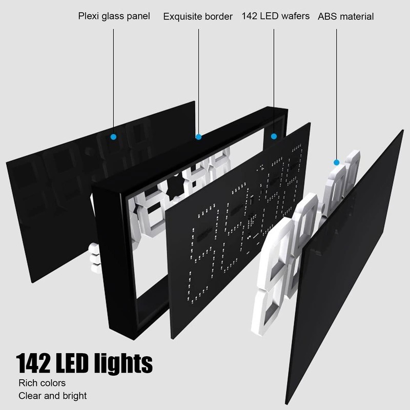• 50M VISIBLE DISTANCE - Super large font, the visible distance is up to 50m, clearly visible, the clock can be used for public spaces such as subways, high speed rail stations, hospitals, airports.