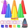 TOPJOWGA 31 Pieces Ring Toss Game Set, 3-in-1 Throwing Game Children's Outdoor Games Set, Party Throwing Games with Traffic Cone, Bean Bags, Throw Rings, Carry Bag, Outdoor Games for Children, Sports