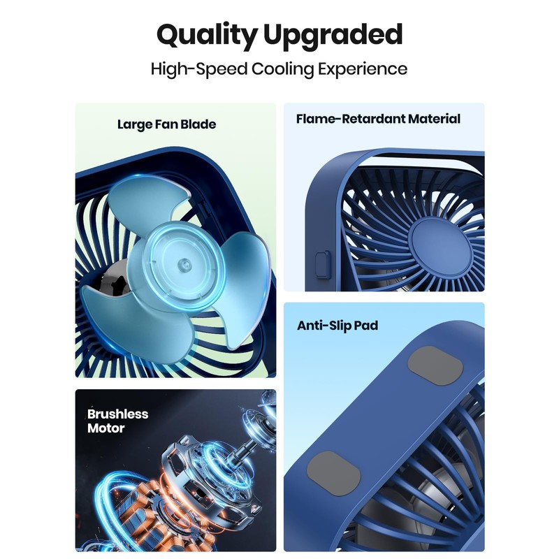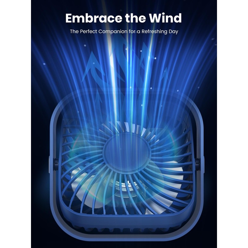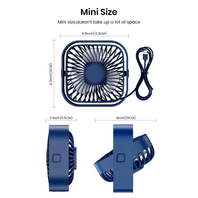 • Compact Size and Application: This is a 4.7-inch mini fan with dimensions of 12*12*5.5 cm (4.7"*4.7"*2"), weighing 0.35 Pounds, light and space-saving. This portable fan is perfect for offices, desktops, dorms, homes, bedrooms, libraries, camping, travel, or anywhere you need to cool off. The noise level is lower than 50 decibels, providing you with a quiet enjoyment