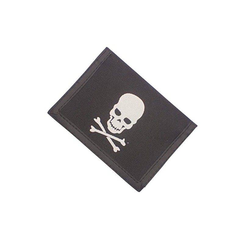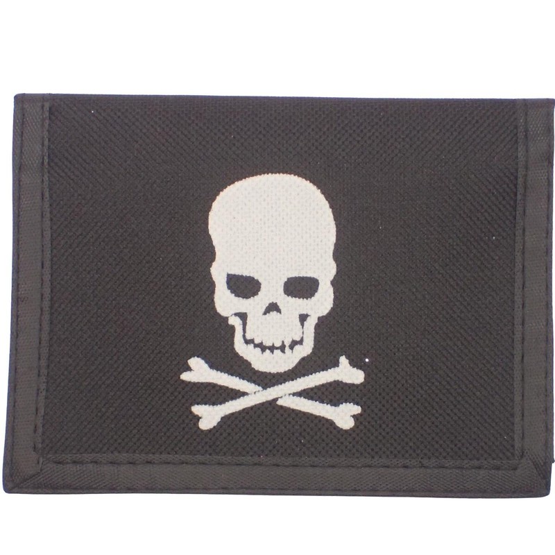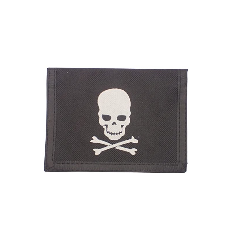 - Fabric trifold wallet with skull and crossbones motif