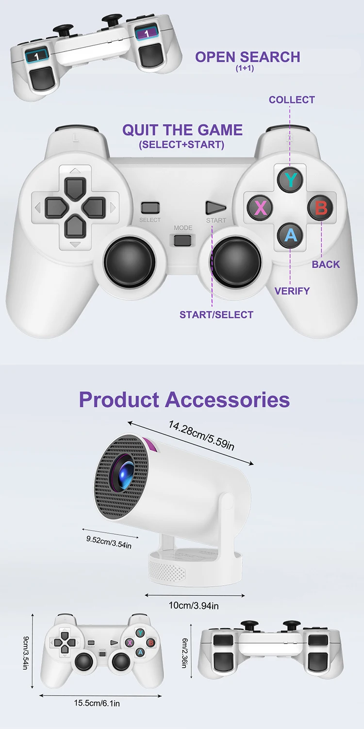 Topleo Hy300 Pro HIfi Smart Gaming Projector Portable Mini Android 11.0 3D 4K Video Home Game Console WIFI Features Projectorcolor: White