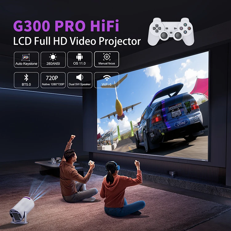 Topleo Hy300 Pro HIfi Smart Gaming Projector Portable Mini Android 11.0 3D 4K Video Home Game Console WIFI Features Projector