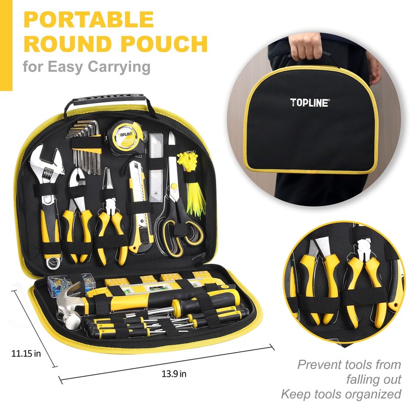 TOPLINE 208-Piece Basic Home Tool Kit with Easy Carrying Round Pouch, Household Hand Tools for Apartment, Home, Basic Tool Set, Perfect for DIY Projects, Home Maintenance