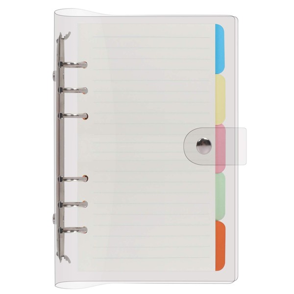 Toplive 6 Ring Binder Cover, Transparent PVC A6 Planner Binder Notebook Cover Refillable Loose Leaf Round Ring Personal Journal with Insert 45 Sheets Paper and Dividers