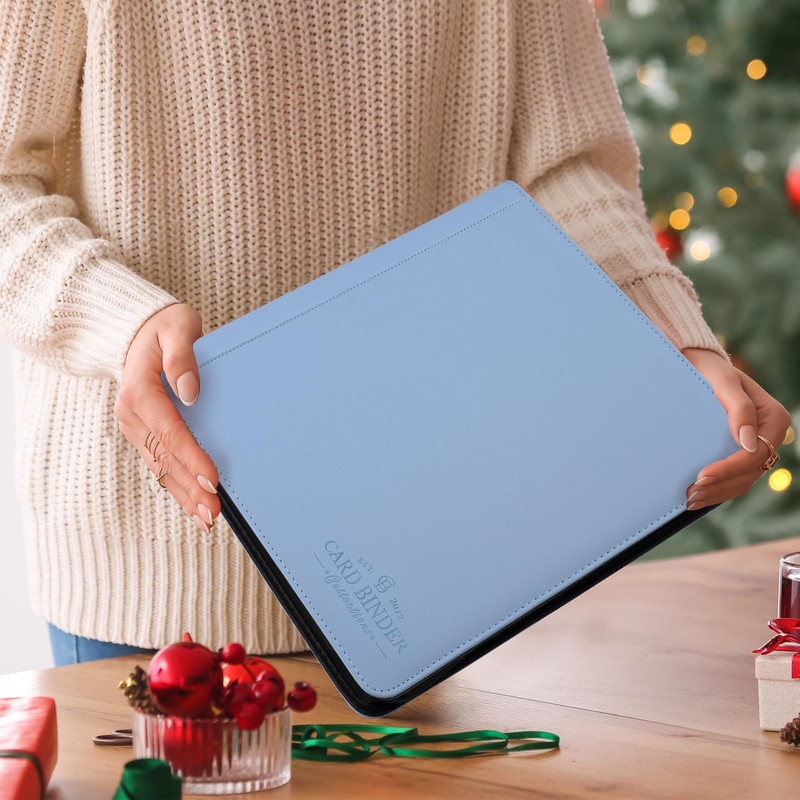 Toploader Binder,Toploader Hard Cases, 9-Pocket Pages Sleeves Hold up 288 Cards.Toploader Card Binder with Sleeves for “3×4” rigid,Card Holder(Light Blue)