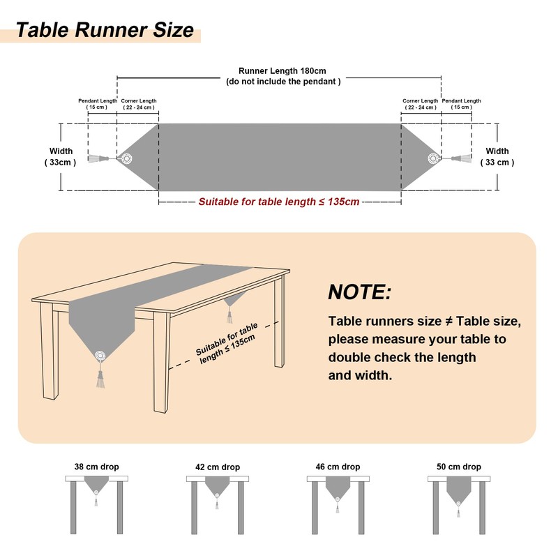 - DIMENSION: 33x180cm (13x72"). The length of table should be less than 142cm (56"). Suitable for dining table, coffee table, TV cabinet, cupboard, etc. Great choice for decoring dining room, restaurant, party, banquet, and festival, such as Christmas.