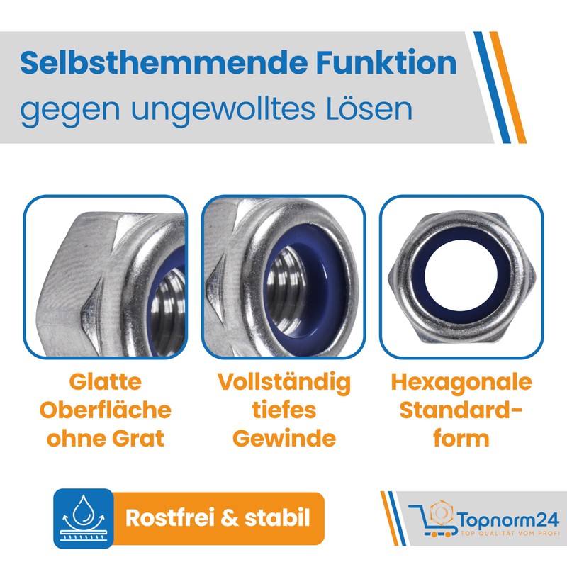 Topnorm24 Topnorm24 - Sicherungsmuttern DIN 985 Edelstahl M10-25 Stck A2 - V2A rostfrei - Stopmuttern - Selbstsichernde Muttern - Klemmmuttern Schraubmutter (25, M10)